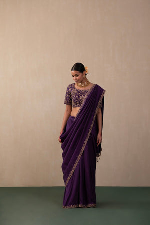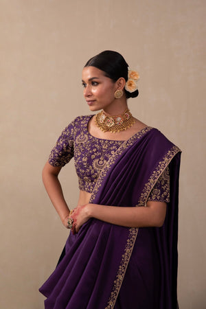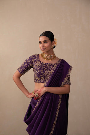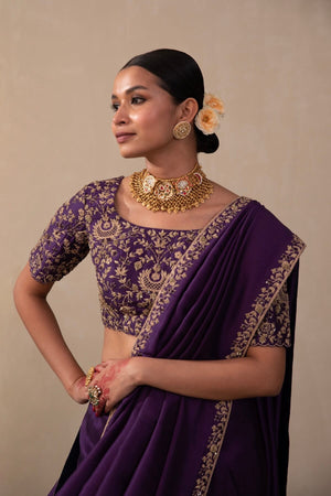 Featured Here Is Our Purple Saree With A Heavy Chandbali Embroidered Blouse