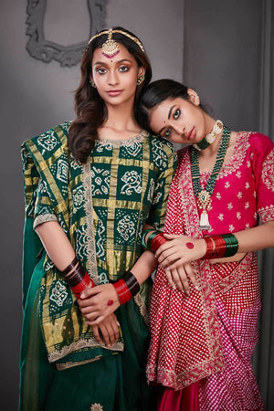 The Pink City By Sarika Organza gharchola saree upholds the strong ceremonial identity and love for Gharchola design.