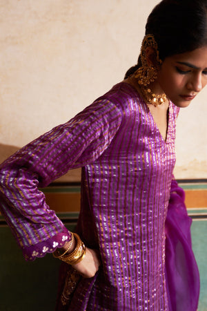 Fabric : Poplin Lycra Pants, Organza Dupatta, Tissue Chanderi Stripes