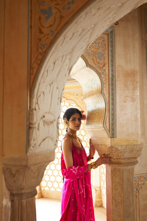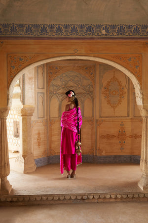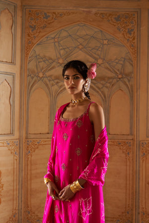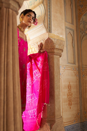 Become your very own Desi Barbie with this gorgeous lotus bandhni dupatta accompanied by a Kurta with matching lotus Buttis.