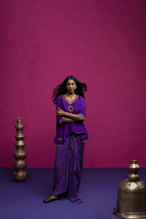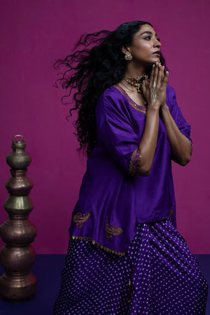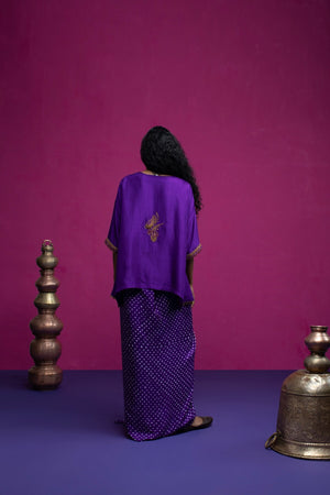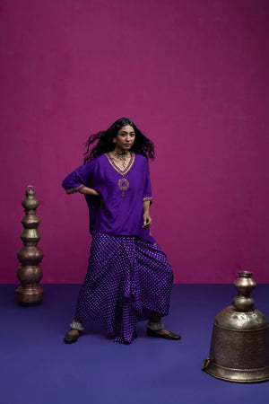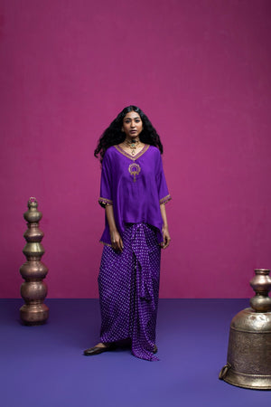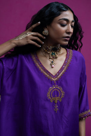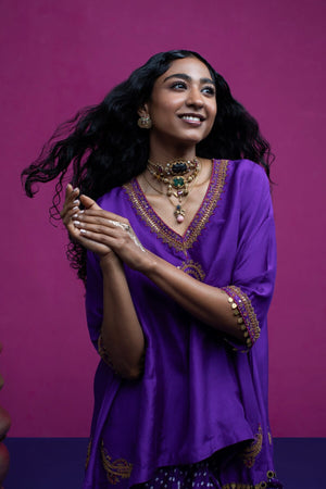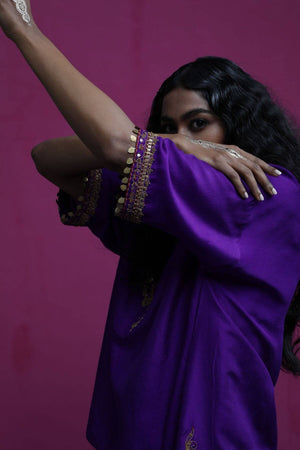 This kaftan top is embroidered with beautiful peacock and paisley. When you want to feel funky, stylish but little light on weight this is one outfit you should opt for.