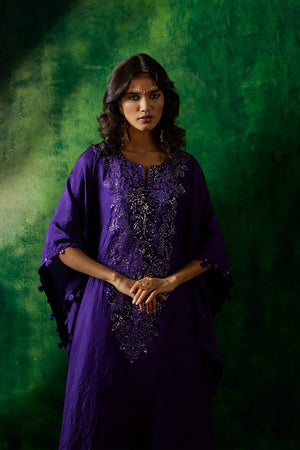 Crushed silk kaftan and dhoti set with delicate mirror embroidery on the yoke.