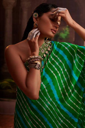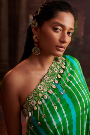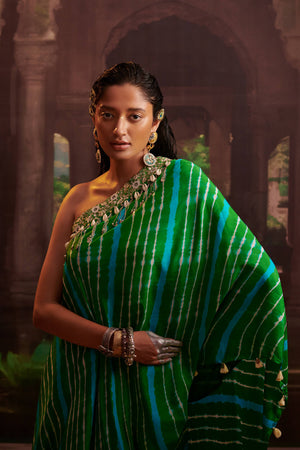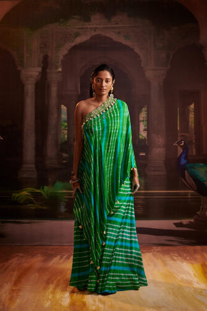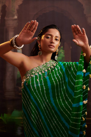 One Shoulder Leheriya Cape And Skirt Set