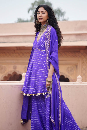 What's in the box : 1 Dupatta, 1 Sharara, 1 Short Anarkali