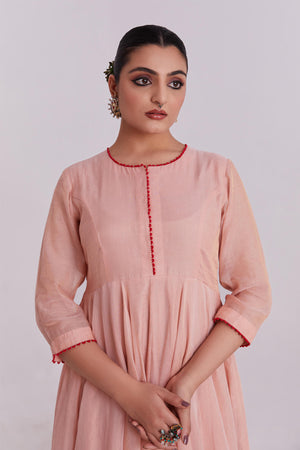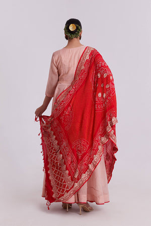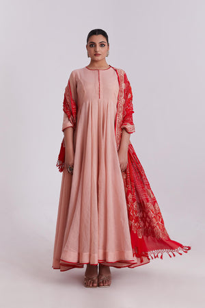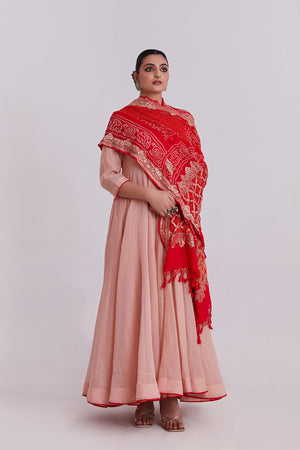 Peach Tissue Anarkali With Heavy Bandhni Dupatta