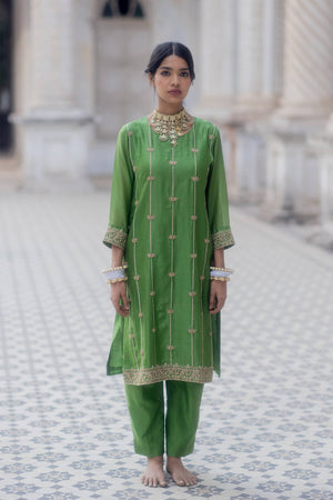 Green lotus kurta set