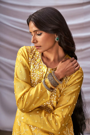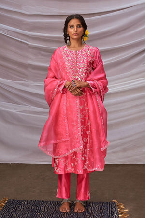 Embroidered Kurta Set With Organza Dupatta