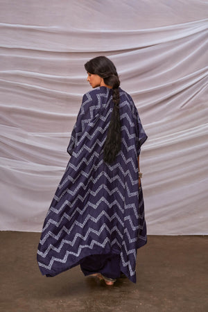 Zig-Zag Bandhani Cape Set With Flared Pants