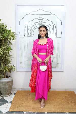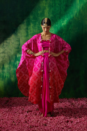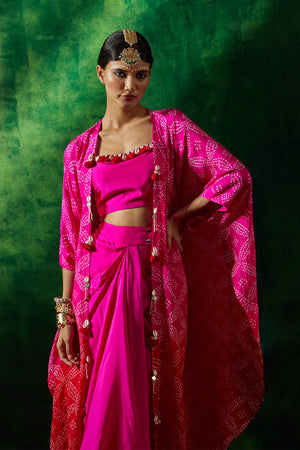 Bandhni cape set with drape skirt