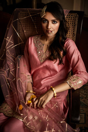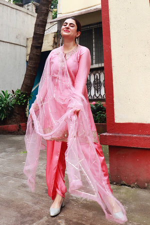 Fabric : Modal Satin, Net Dupatta, Silk Chanderi