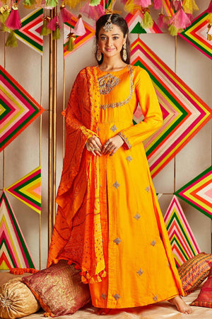 Front Slit Anarkali With Pants And Bandhni Dupatta