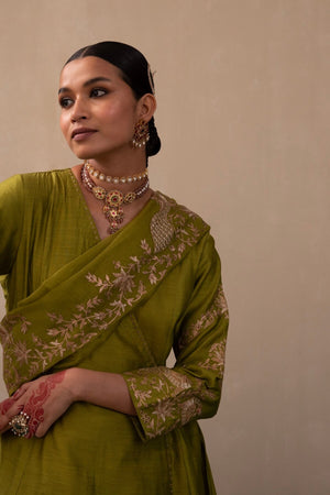 We Have Given A New Version To Our Signature Mor Angrakha.this Also Has Heavy Embroidery On Sleeves.don’t Miss Out The Embroidered Latkans