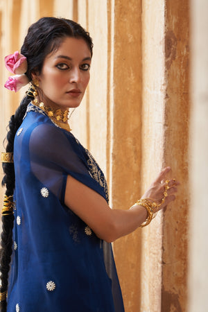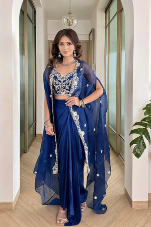 With detailed dori work, this lotus embroidered cape set is the perfect combination of style, elegance and boldness.