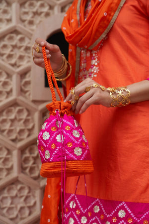 What's in the box : 1 Dupatta, 1 Kurta, 1 Sharara, 1 Potli
