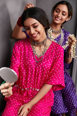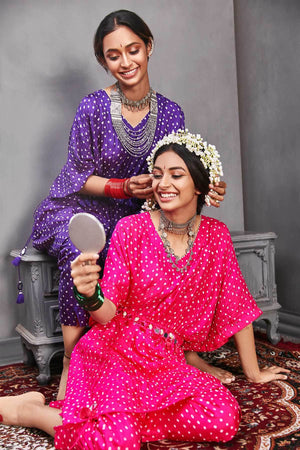 Disclaimer : As bandhni and leheria is hand made little difference in pattern and colour is possible