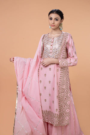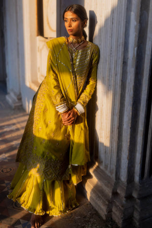 This festive sharara set is all about detailed Gota and zari embroidery on saturated tones.