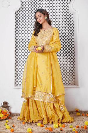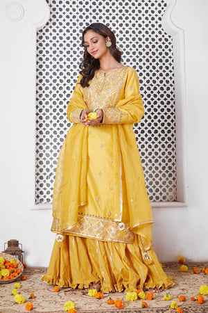 What's in the box : 1 Dupatta, 1 Kurta, 1 Sharara