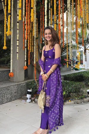Spaghetti Kurta Set With Bandhani Dupatta