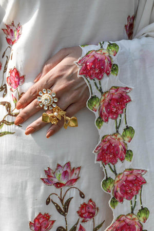 This set is a combination of digitally printed lotus motifs that are highlighted delicately. This ends up to be the first choice of people who are looking for classic designs.